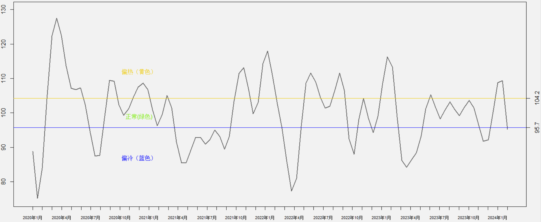 圖1 中國銅需求量景氣指數(shù)2020年1月至2024年2月